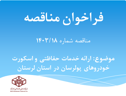 شركت ملي خدماتي تدارك ( سهامي خاص ) در نظر دارد جهت دریافت خدمات حفاظتی و مراقبتی خودروهای پولرسان در سطح استان لرستان از طریق برگزاری مناقصه عمومی اقدام نماید.